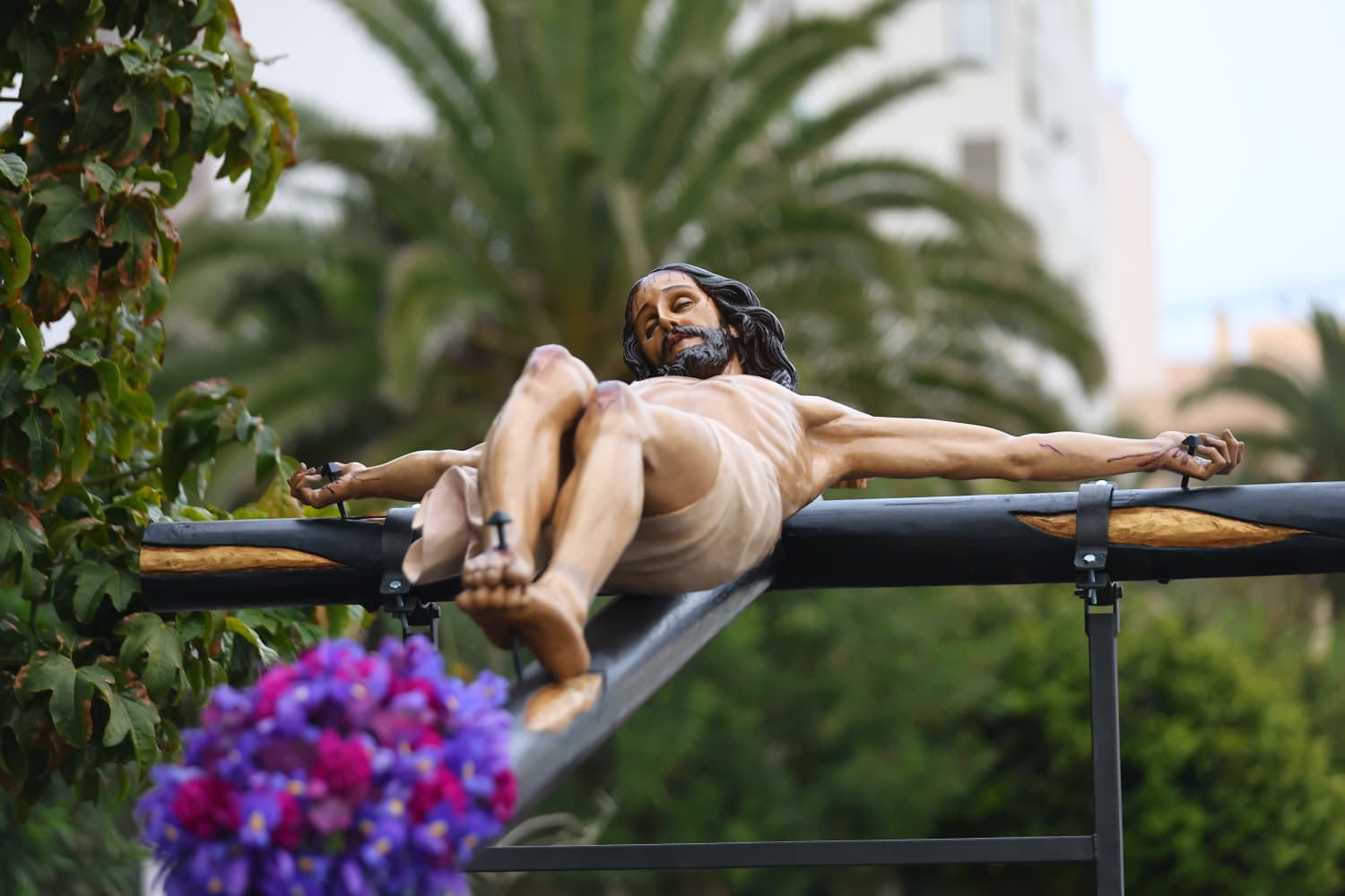 A partir del pasado año, con motivo del Año Jubilar y tras la restauración de la imagen realizada por Ana García, el Señor realiza su salida por las puertas de la Iglesia del Pilar. Desde allí procesiona en la parihuela del Cristo de las Aguas y recorre las calles del barrio antes de entrar al patio del centro educativo.