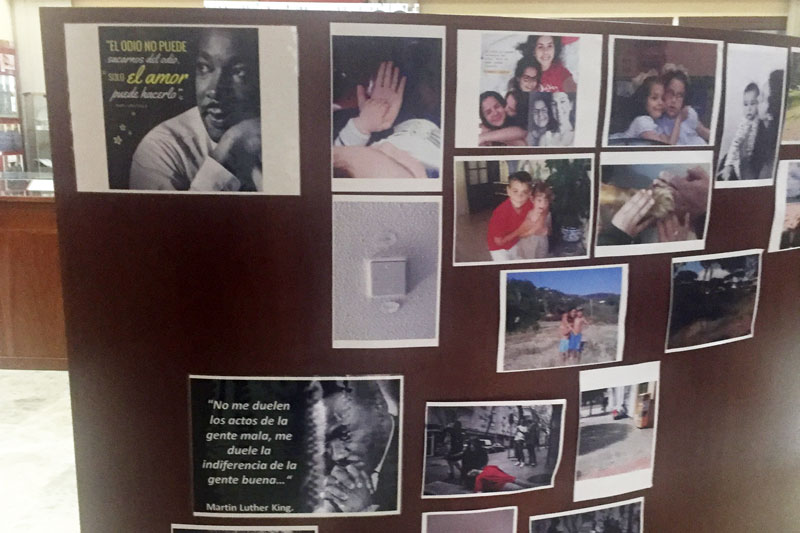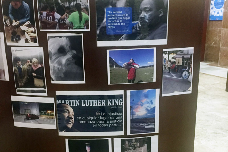 Dicha exposición podemos disfrutarla en el hall de entrada, cada parte tiene la frase asignada y las fotos originales que el alumnado ha realizado.
